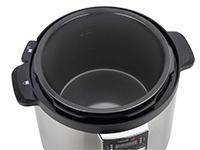The LUX comes with a non-stick, ceramic 6 quart removable cooking pot that is easy to clean.