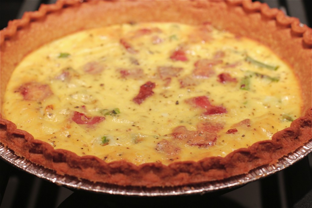 I totally forgot to add the can of dice tomatoes! Ugh! That would explain why the tart is not very full. Anyway, it was very tasty and I ate more than my share. :)