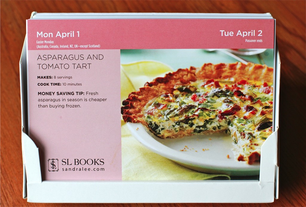 Each recipe card has a great colored photo of the recipe with easy to read directions on the back. You can even transfer your favorite recipe cards to your own recipe file. I like that the recipes are seasonal…lighter fare in the summer and heartier recipes in the winter. The recipes also highlight in-season fruits and vegetables. Between the two calendar boxes, you’ll never run out of ideas of what to make!