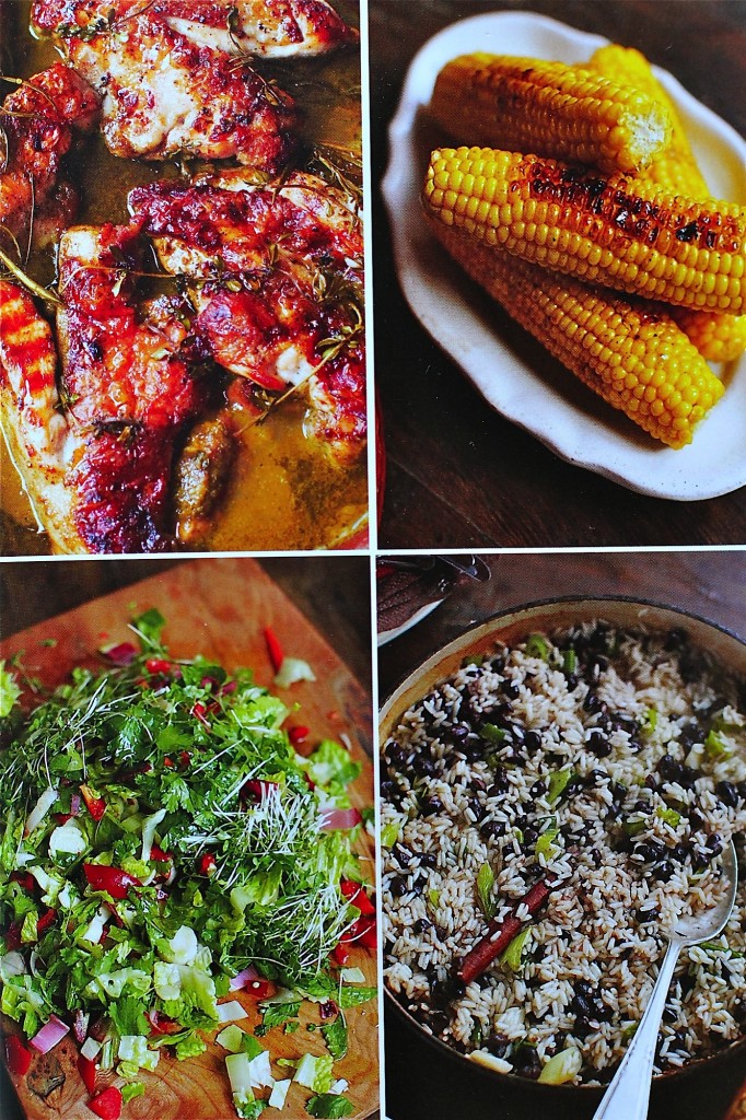 On this page, you’ll find his recipe for Killer Jerk Chicken, Chargrilled Corn, Refreshing Chopped Salad, and Rice & Beans.