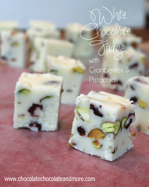 White Chocolate Fudge with Cranberries & Pistachios from