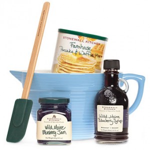Now onto my giveaway! Stonewall Kitchen is giving away the Blueberry Batter Bowl Gift Set to one of my readers! It includes everything needed for a great breakfast; Farmhouse Pancake Mix, Maine Blueberry Jam and blueberry syrup, a pour spout batter bowl and a silicone spatula!