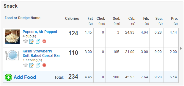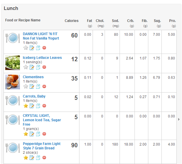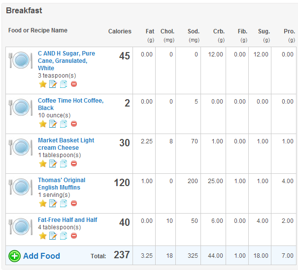 I have tried other diets before, but this food journal really helps me to lose weight. You select how much weight you want to lose and the program tells you how many calories you need to consume each day to lose 1 lb. a week. By using this journal, I have started reading labels more and now I recognize the nutritional value of food. I still get cravings for chips and I indulge every now and then, but this journal really helps me to make healthier choices. Here’s what one of my days looks like.