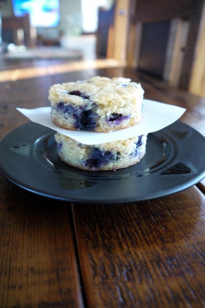 These “brownies” are fabulous. More like blondies in texture, they are so creamy and sweet, and studded with wonderfully fresh and fruity blueberries. A lovely yet delicate little crust forms on top when they bake, which yields to a chewy interior that tastes only faintly of white chocolate, and more like heaven. Seriously delicious stuff, my friends. I highly recommend making these ASAP. They make for a great bite-sized dessert, and are extra cute cut into shapes.